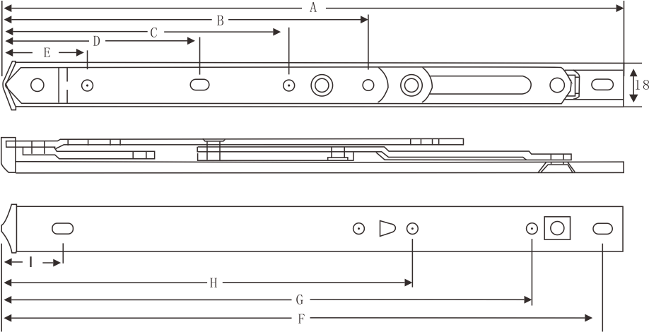 | 連桿數(shù)量 | 折片厚度(mm) | 規(guī)格\值 | A | B | C | D | E | F | G | H | I | 窗最高(mm) | 窗最寬(mm) | 窗最重(kg) | 開(kāi)啟角度(±2°) |
